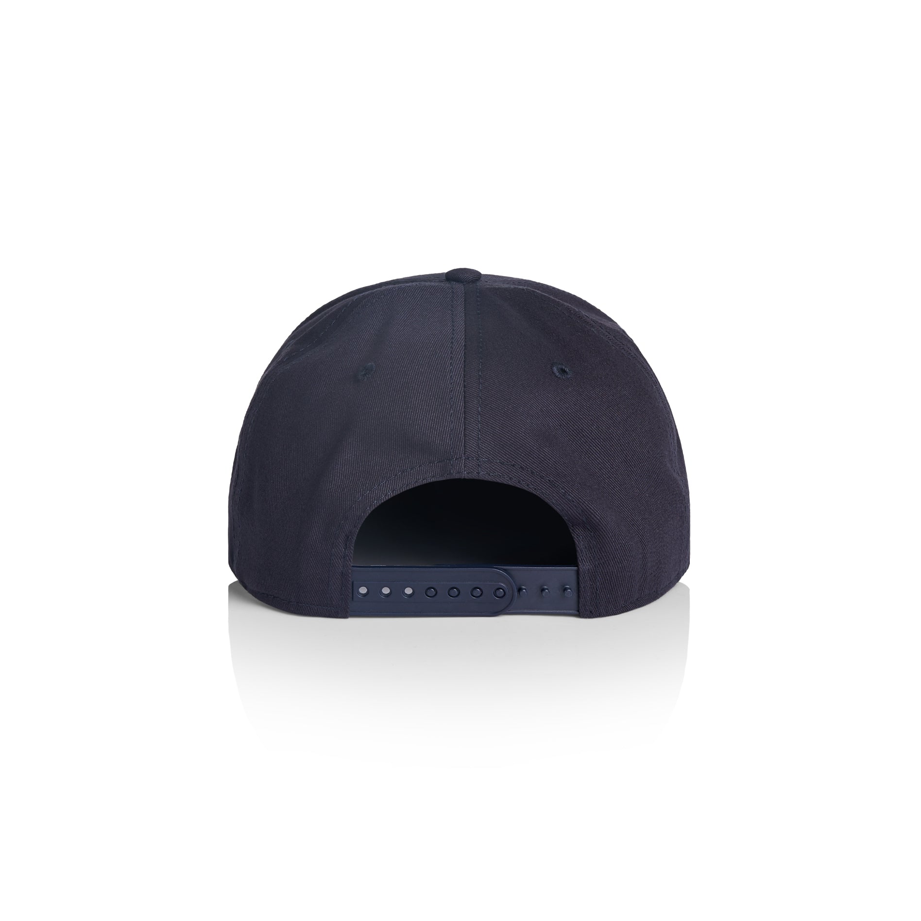 Low profile six panel, curved peak Structured snapback cap with contourned crown Mid weight 100% cotton Adjustable plastic fastener, eyelets, tonal underpeak lining